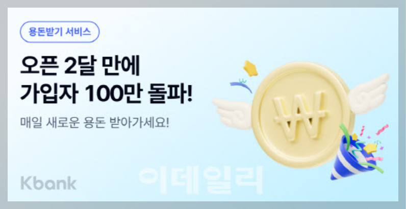 케이뱅크가 올해 1월 출시한 ‘용돈받기’ 서비스는 단 2개월 만에 가입자 100만 명을 돌파하며 큰 인기를 끌고 있습니다.