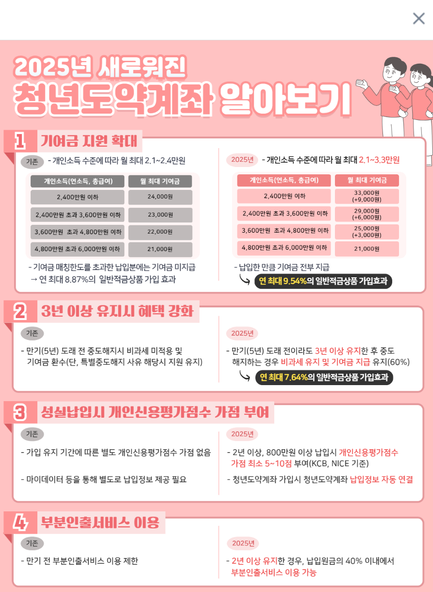 특히, 올해부터 정부 지원금이 늘어나면서 실질 금리 혜택이 더욱 커져 최대 5,000만원 이상의 목돈을 마련할 수 있습니다.