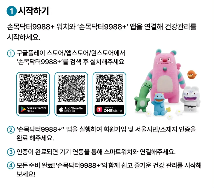 손목닥터9988에 참여하려면 전용 앱 설치 및 스마트밴드 연동이 필요합니다.