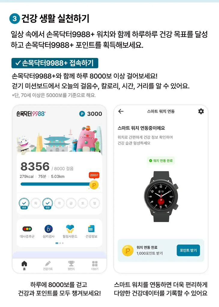 📌 TIP: 70세 이상은 하루 5,000보만 걸어도 200포인트 지급!