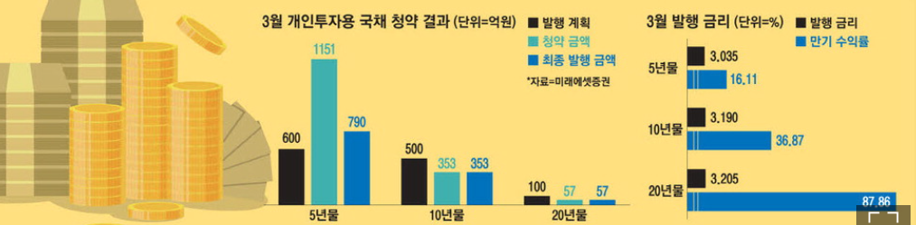 개인투자용 국채는 정부가 개인 투자자를 위해 발행하는 채권으로, 미래에셋증권을 통해 청약할 수 있습니다.