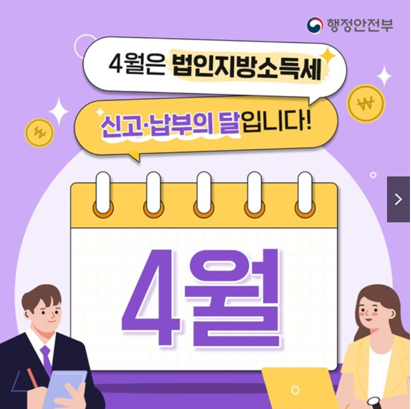 법인지방소득세는 2024년도 법인 소득 부분에 대한 법인지방소득세는 4월 30일까지 신고해야 합니다.