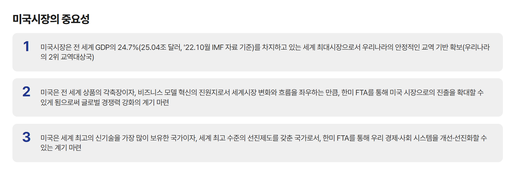 미국 의존도를 줄이고, 유럽, 동남아, 중동 등 다양한 시장으로 수출 경로를 확대해야 합니다.