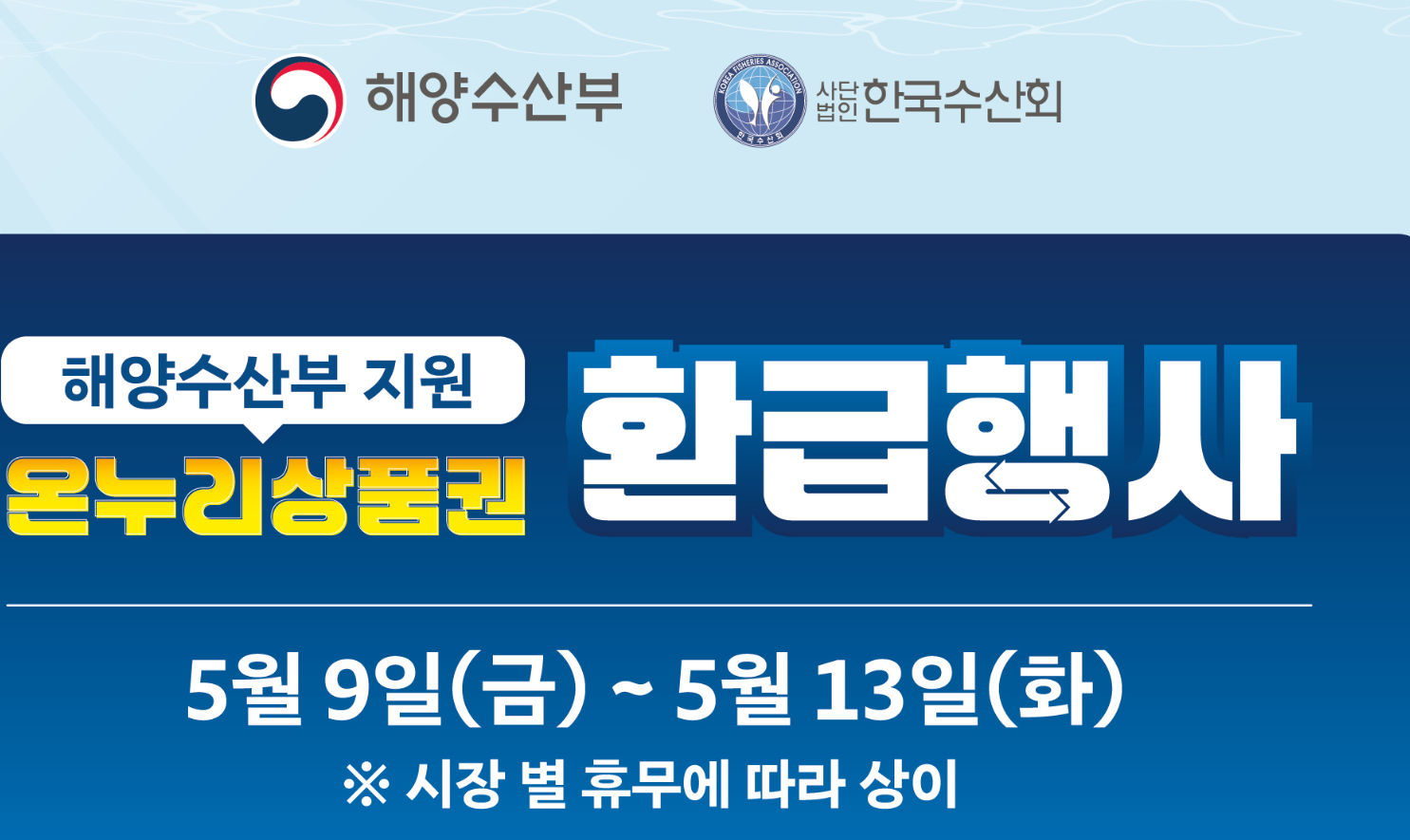 가정의 달 5월을 맞아 전통시장에서 국산 수산물을 구입하시면, 온누리상품권을 최대 2만 원까지 돌려받을 수 있는 환급행사가 진행됩니다.