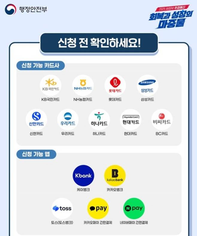 행정안전부는 현재 복지부·국세청·건보공단과 협의 중이며, 9월 10일경 최종 기준을 발표할 예정이다. 발표 이후 신청 절차가 곧 시작될 것으로 보인다.