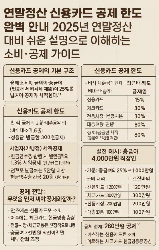 연말정산에서 가장 많은 사람들이 헷갈리는 부분이 바로 신용카드 공제의 기준과 한도입니다.