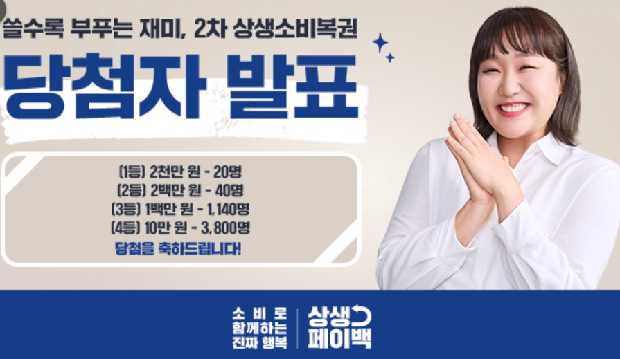 2차 상생소비복권이 12월 9일 당첨자를 발표했습니다.