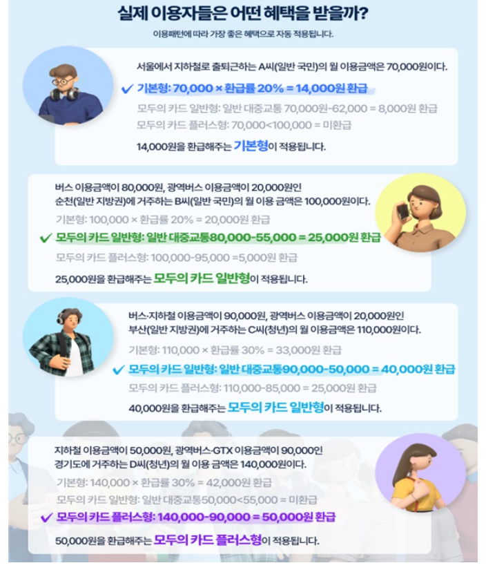 특히 주목할 점은 별도의 카드 발급이나 신청 절차가 필요 없다는 점입니다. 기존에 사용하던 K-패스 카드를 그대로 이용하면, 시스템이 자동으로 해당 월의 이용 내역을 분석해 K-패스와 모두의 카드 중 환급 금액이 더 큰 방식을 적용합니다.