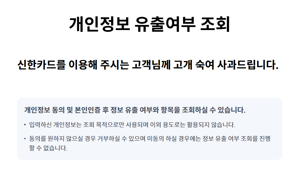 신한카드는 가맹점 대표자의 개인정보 약 19만 건이 외부로 유출된 정황을 확인하고 개인정보보호위원회에 공식 신고했습니다. 유출된 정보는 휴대전화번호를 중심으로 일부 성명, 생년월일, 성별 등 입니다.