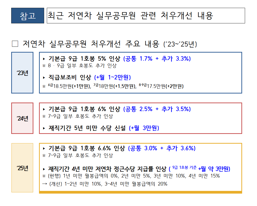 - 실무직·저연차 공무원의 경제적 안정성 향상 목표.