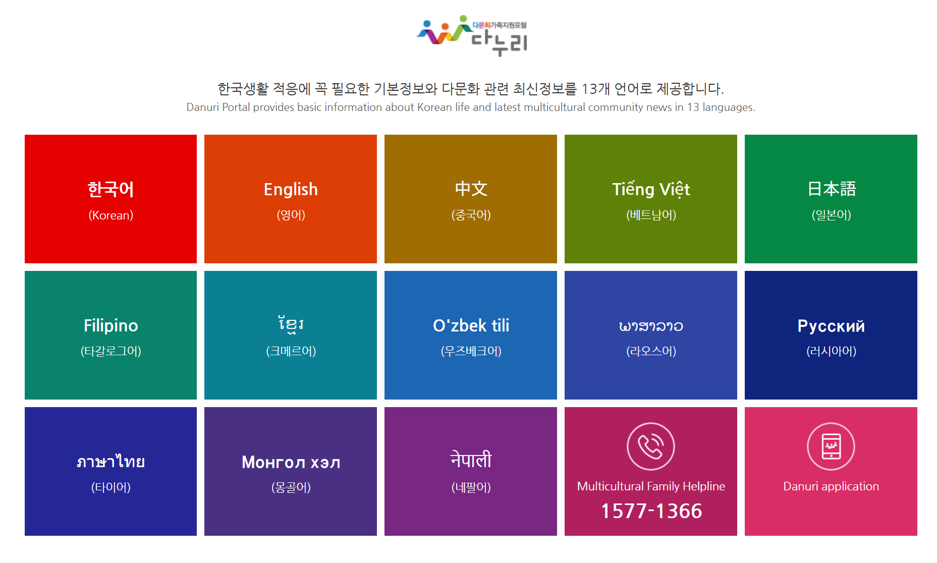 * 365일 24시간 다국어 상담으로 부부·가족 갈등상담, 폭력피해 긴급상담, 한국생활 정보 등 제공