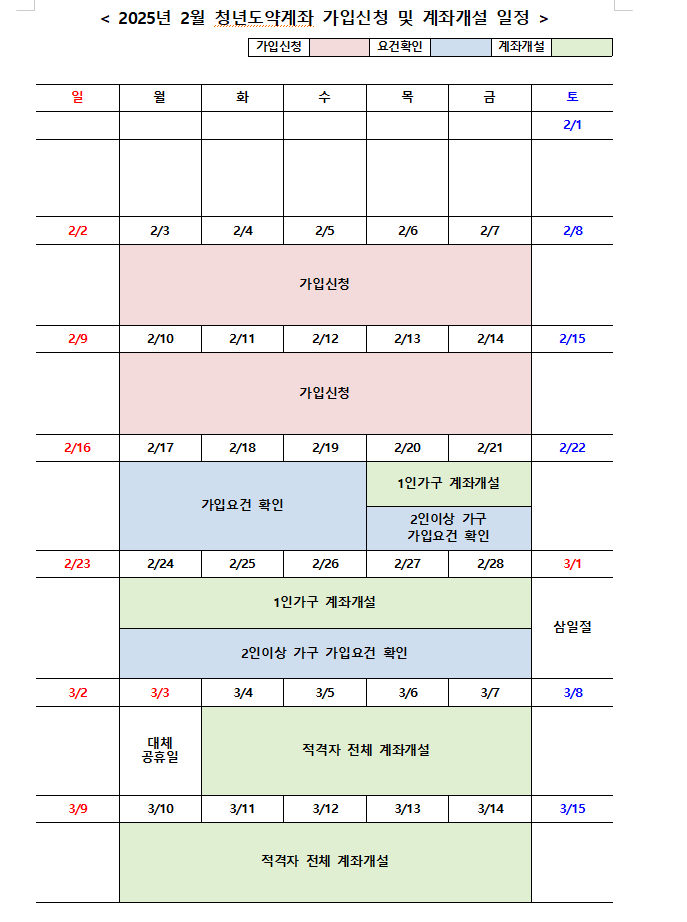2025년 2월 청년 도약계좌 가입신청 및 계좌 일정 안내