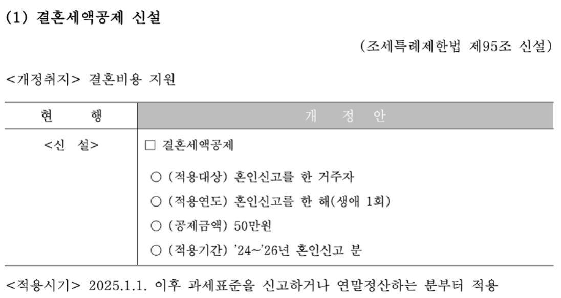 2025년 부터 혼인 장려를 위한 세액공제, 자산형성을 위한 저축 소득공제 한도 확대 등 세제 지원 강화되었습니다.