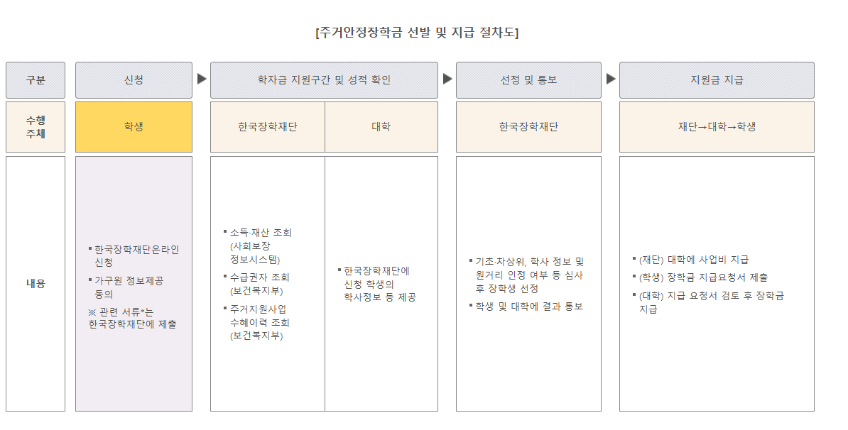 [주거안정장학금 선발 및 지급 절차]