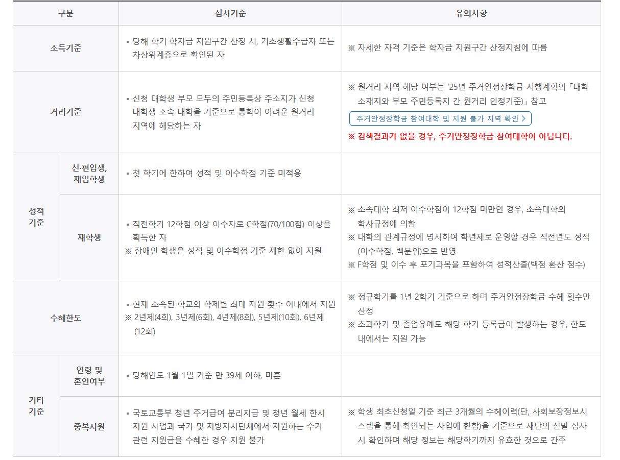 주거안정장학금 심사기준