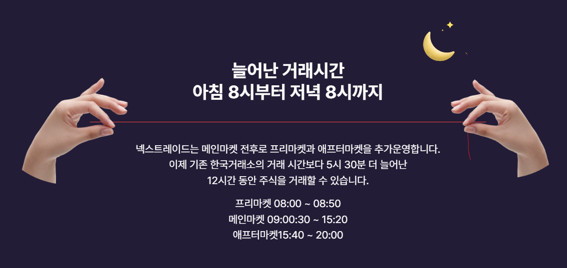 넥스트레이드 출범의 가장 눈에 띄는 변화 중 하나는 바로 거래시간의 확장입니다.