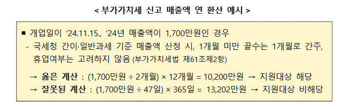- 2023년 또는 2024년 연 매출이 1억 400만원 미만인 소상공인