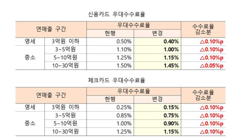 2월 14일부터 카드 수수료율 인하