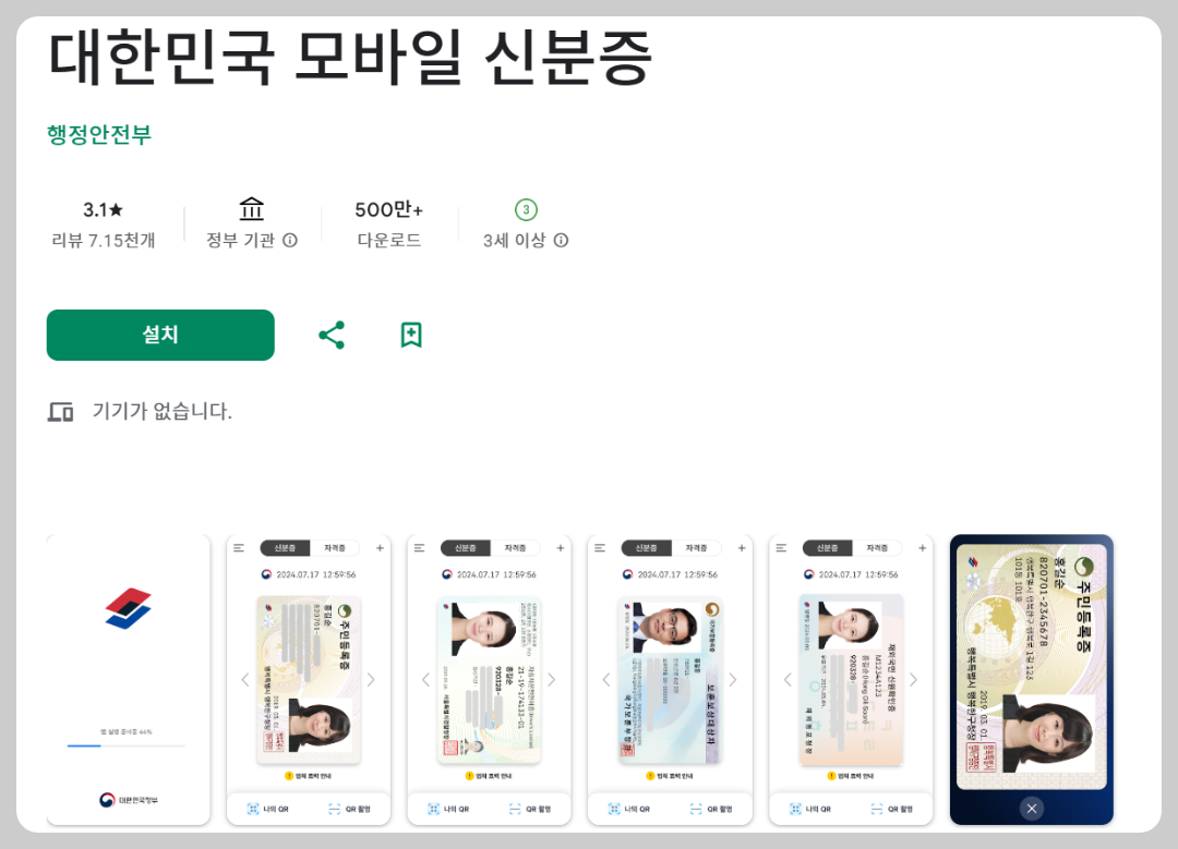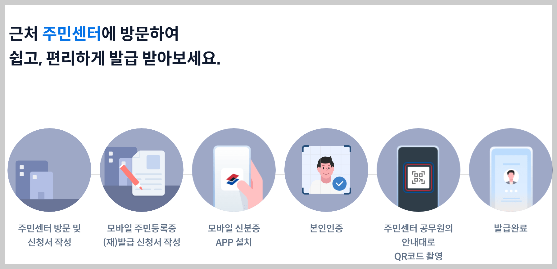 모바일 주민등록증을 발급받기 위해서는 ‘대한민국 모바일 신분증’ 앱을 설치한 후, 본인 확인 절차를 거쳐야 합니다.