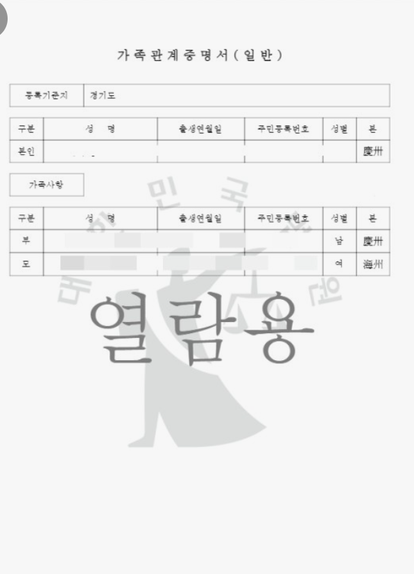 - 세대주와의 관계를 증명할 수 있는 서류 (가족관계증명서, 혼인관계증명서 등, 필요 시 제출)