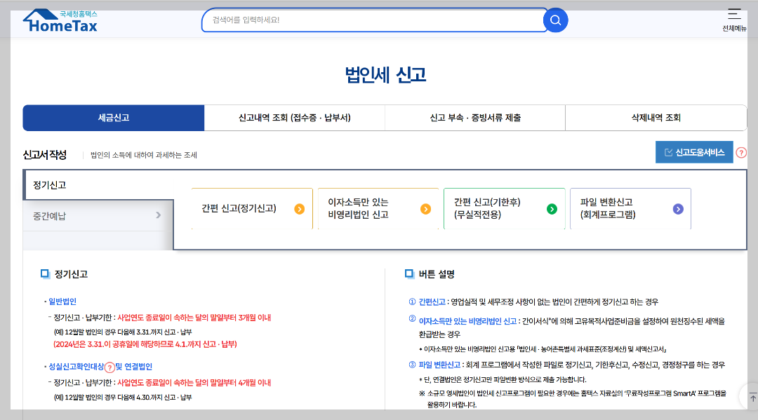법인세 신고는 홈택스를 이용한 전자 신고 방식으로 진행됩니다.