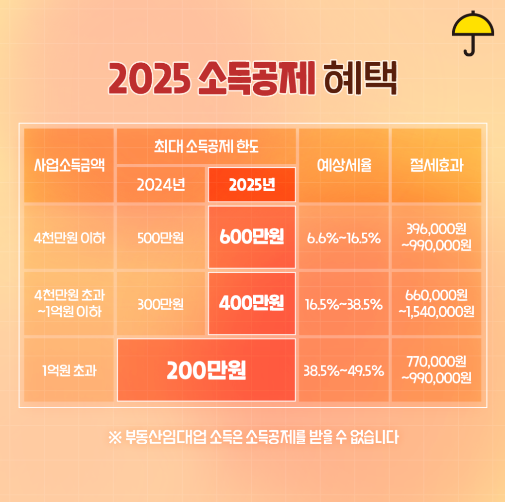 이는 소득세 절감 효과를 제공하여 실질적으로 자영업자의 세부담을 줄여줍니다.